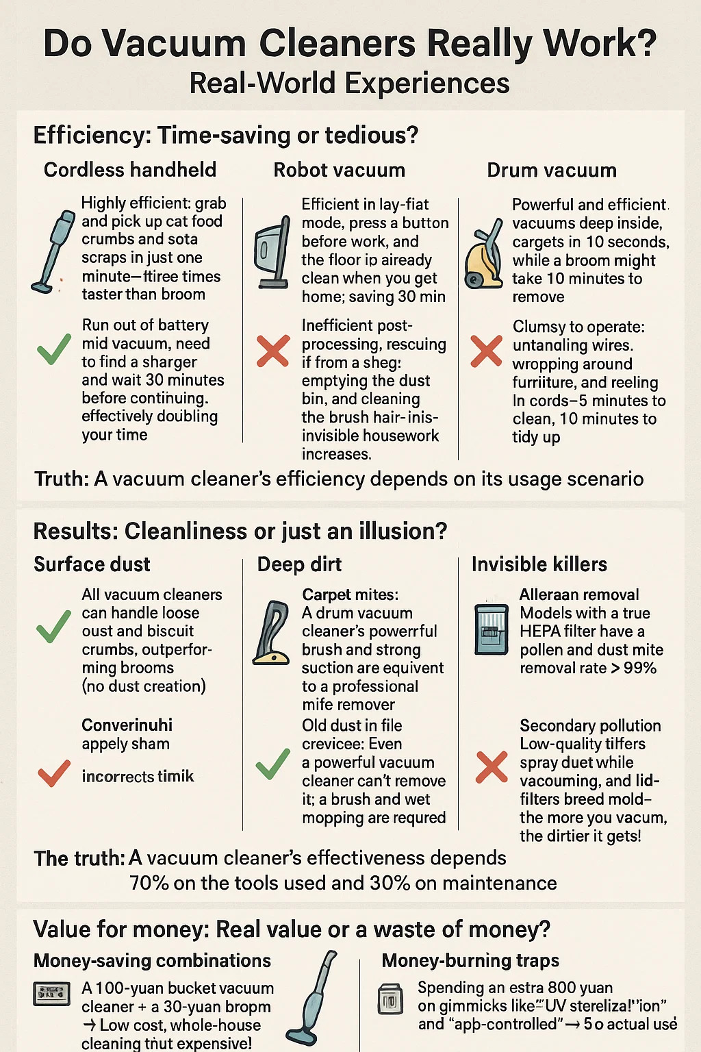 Para tasarrufu sağlayan kombinasyonlar: ► 100 yuan'lık kovalı elektrikli süpürge ve 30 yuan'lık süpürge → Düşük maliyetli, tüm evi temizleyen (ama pahalı). ► 1.000 yuan'lik elektrikli süpürge aylık temizlik ücreti tasarrufu → 2 yıllık geri ödeme (tembel insanlar için ideal).